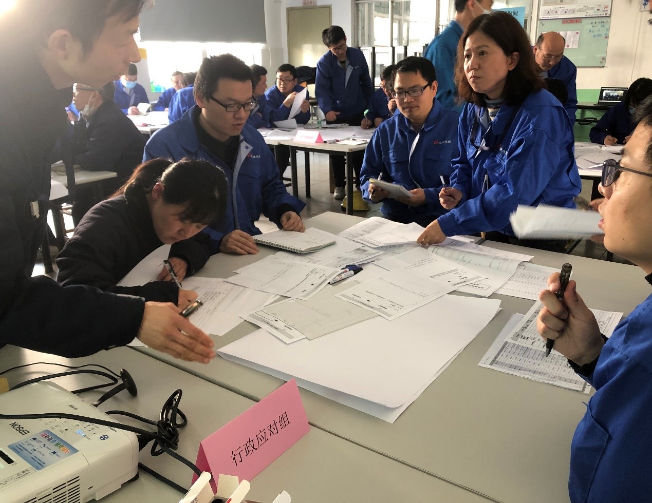 2022年2月24日 13:00,在公司食堂进行了BCP(Business Continuity Plan)桌面综合演练,训练的主题是:假设工场发生火灾,造成生产中中断情景,公司立即启动BCP应急预案,成立了危机对策本部及事务局、行政应对组、生产支援组、设施应对组和生产现场组。从最初的火险救援、紧急抢救、应对政府、客户等三方的问询到最后组织恢复生产,各小组根据BCP手册要求各司其职,顺利完成了此次桌面演练。通过此次演习让大家理解BCP、尝试运行BCP、改善BCP。以后我们也将不断强化BCP训练,持续完善BCP体系。