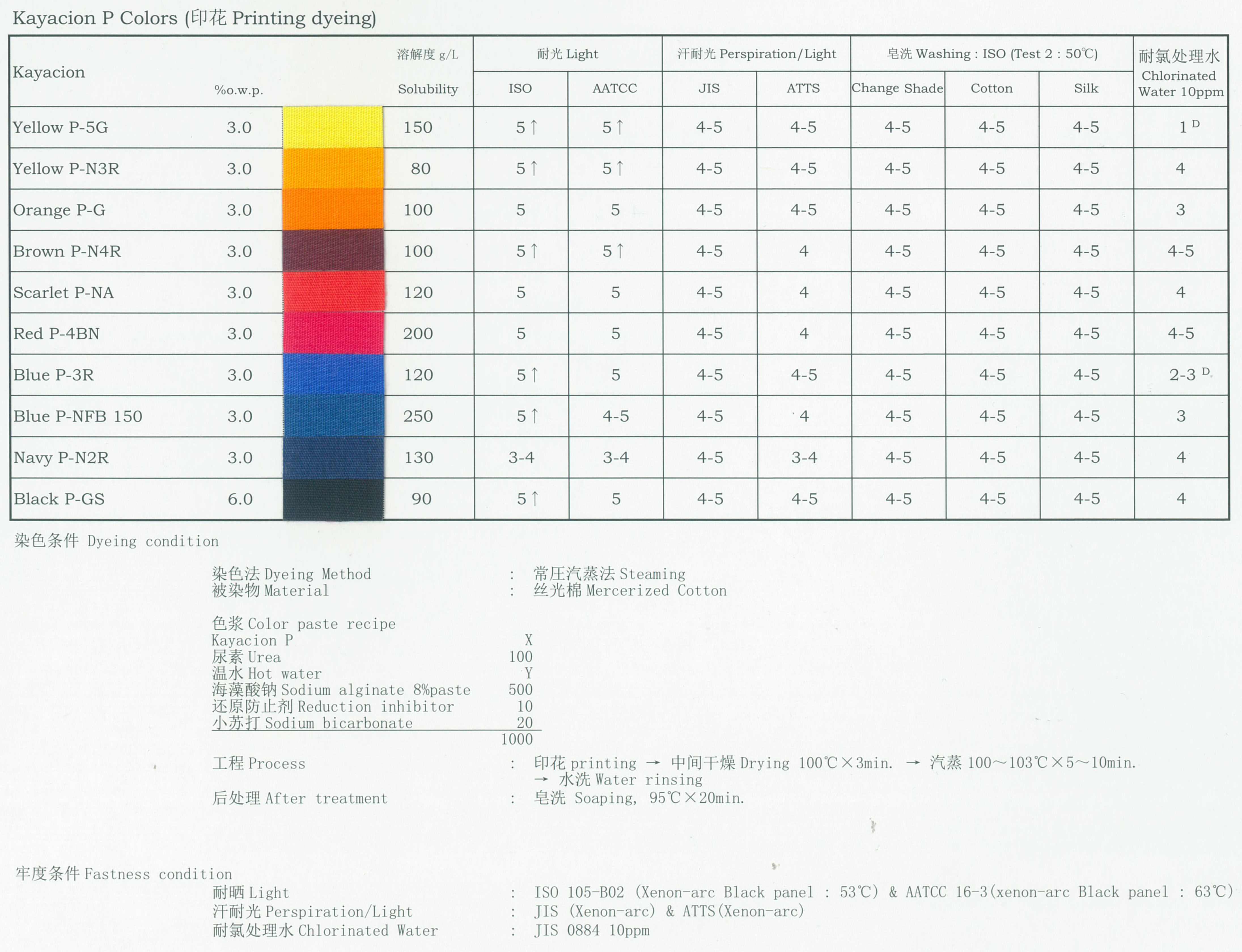 Kayacion P Colours: 适用于捺染、连续染色用活性染料