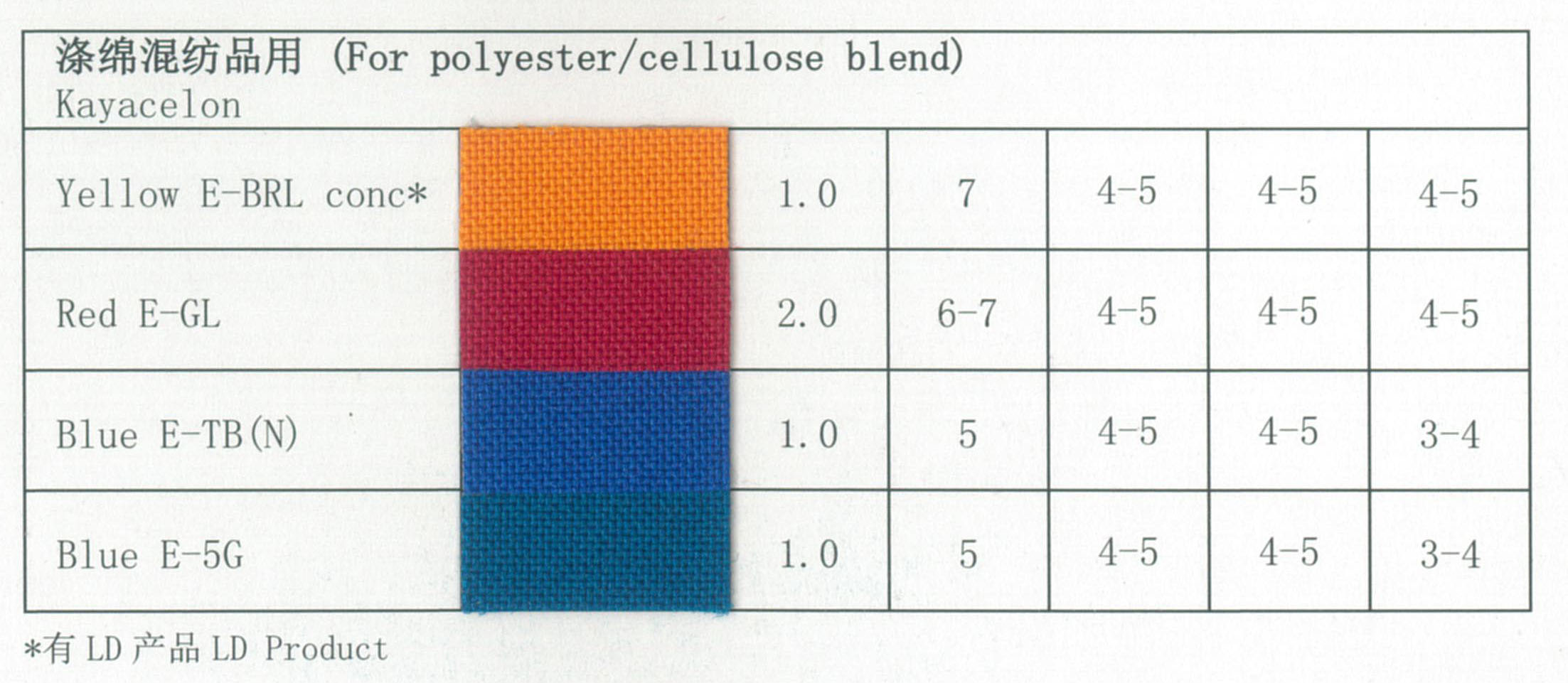 Kayacelon E Colours: 涤/绵一浴染色用分散染料