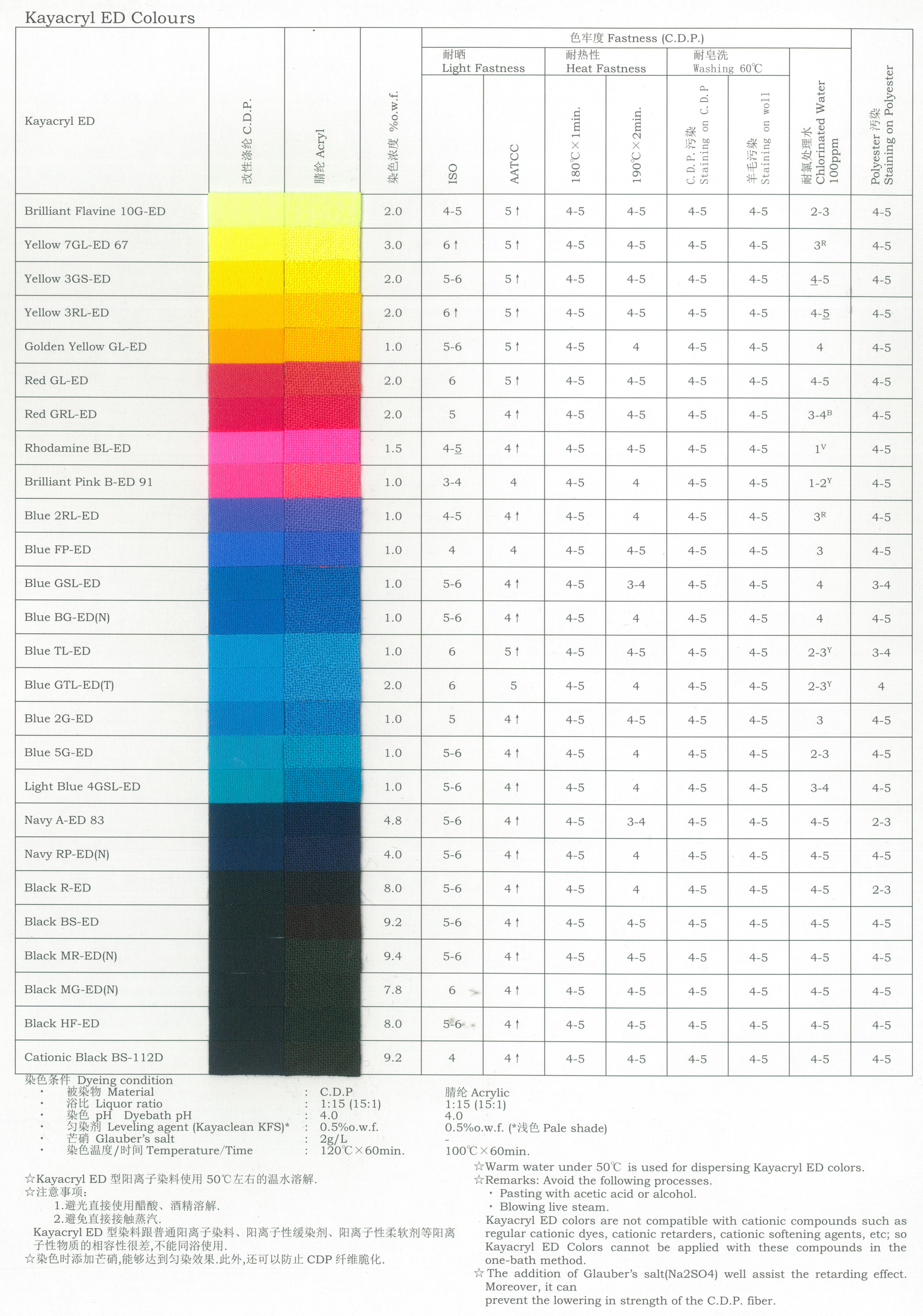 Kayacryl ED Colours: 分散型阳离子染料